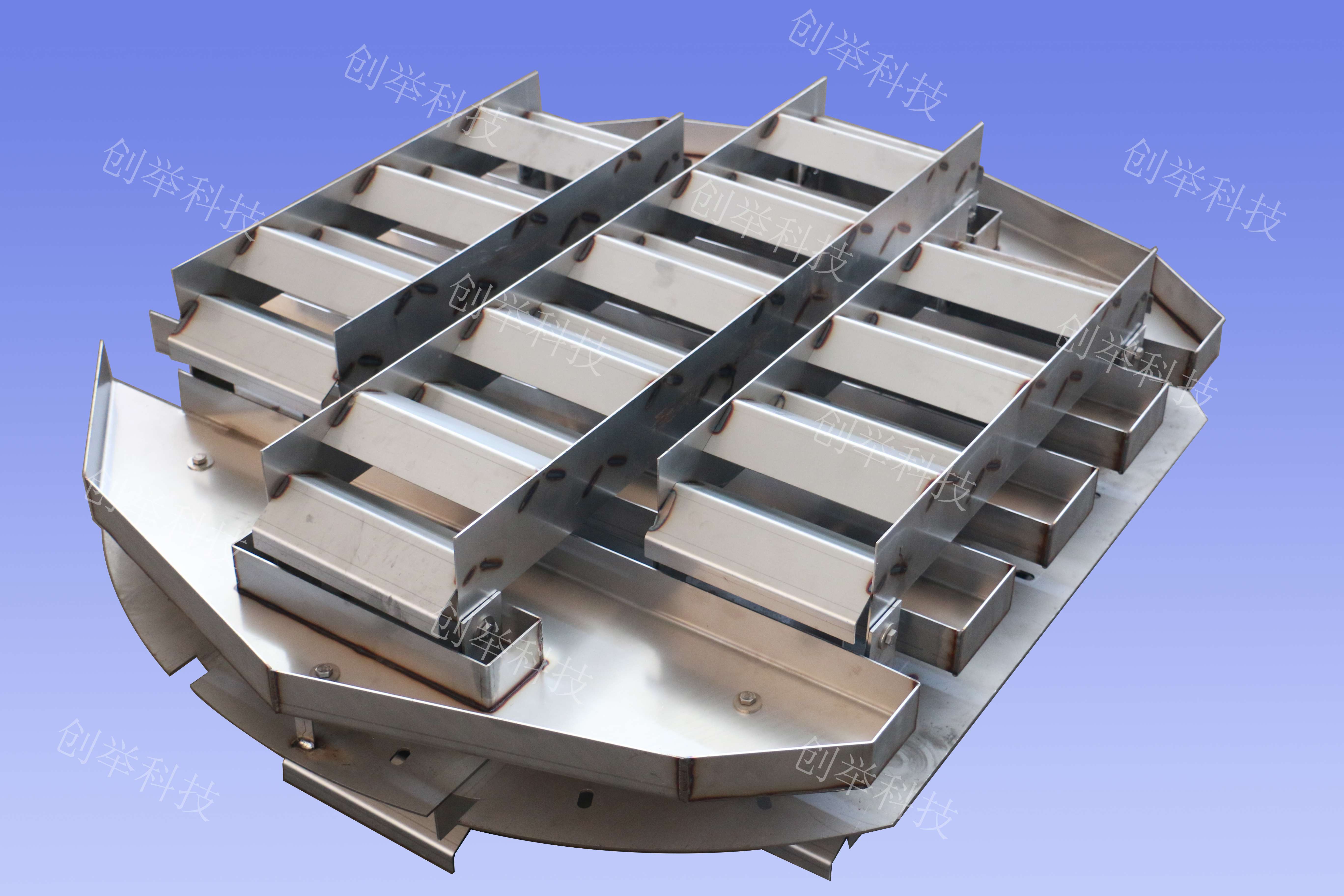 2、雙層V型板組合能有效降低高氣速下的氣相霧沫夾帶,使得塔板的處理能力更大。