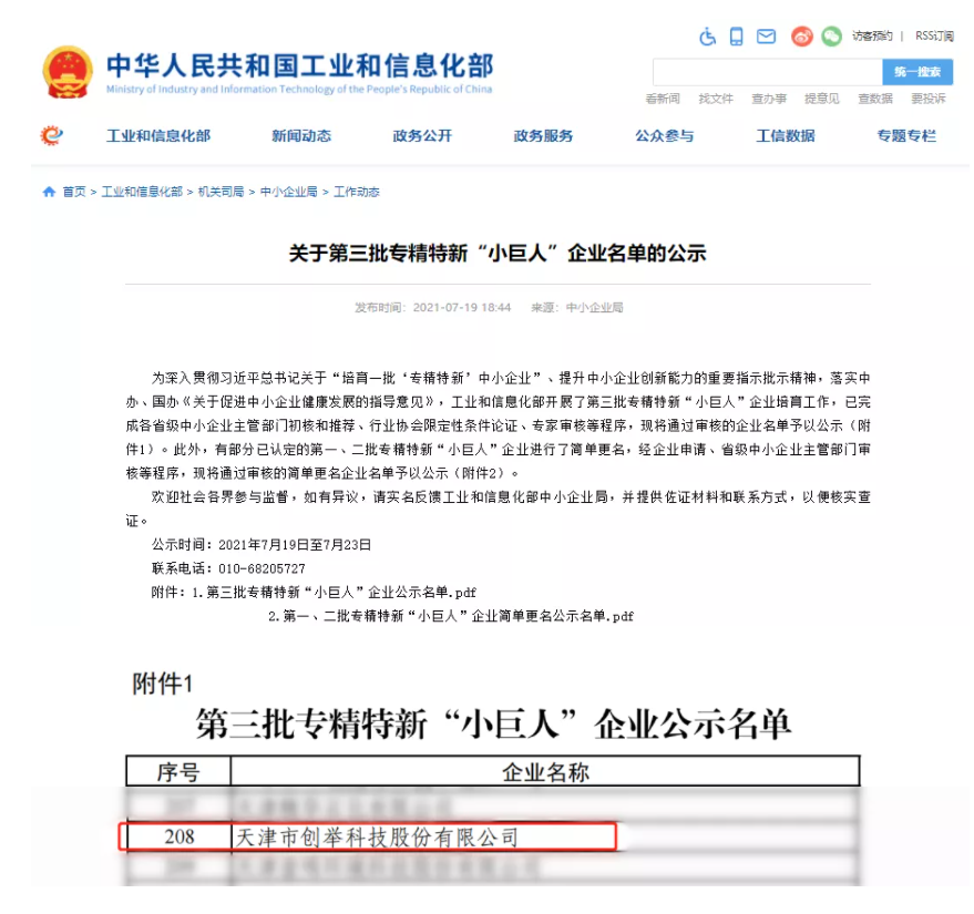 近日,國(guó)家工業(yè)和信息化部發(fā)布第三批專精特新“小巨人”企業(yè)名單,天津市創(chuàng)舉科技股份有限公司榮列其中,獲得國(guó)家級(jí)專精特新“小巨人”企業(yè)榮譽(yù)稱號(hào)。